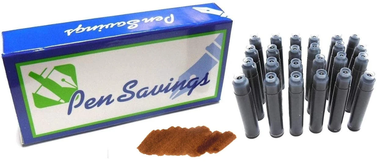 24 Standard International Short Fountain Pen Ink Cartridges, Rustic Brown