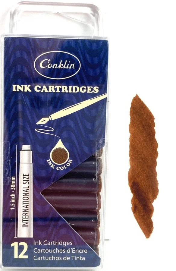Conklin Fountain Pen Ink Cartridges, 12 Pack, Brown